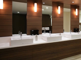 自然な木目が美しい無垢材ですが、水には弱いためキッチンやトイレ、洗面台など水が飛ぶ場所には適していません。こういった場所に木目調プリントの化粧合板を使うと、毎日のお掃除やメンテナンスが楽になります。