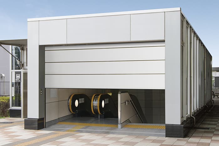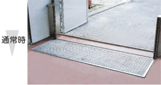 代表的なものが建物の開口部やゲート付近などに設置する防水板で、日軽エンジニアリング株式会社の「手動跳ね上げ式防水板」のような地面に埋設する跳ね上げ式の防水板や、豊和工業株式会社「ミズガード」のように堅牢な防水性能を持つドアを開口部などに設置することにより、敷地内・建物内への水の侵入を防ぎます。