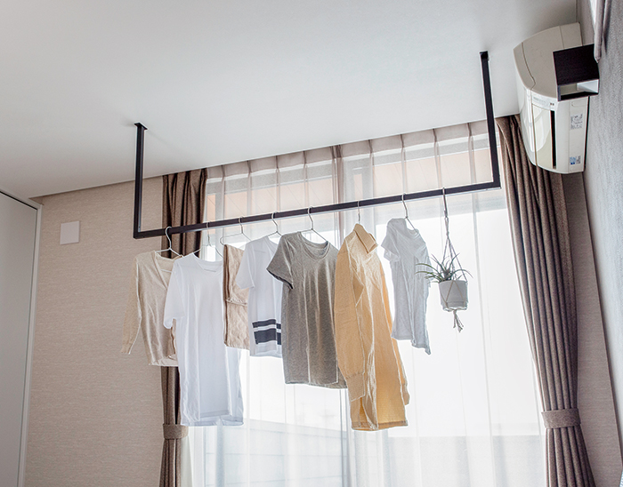 持ち家に住んでいて、工事や壁への取り付けが可能なら、しっかりした室内物干しを設置すると、雨の日の部屋干しにも活用できて便利です。