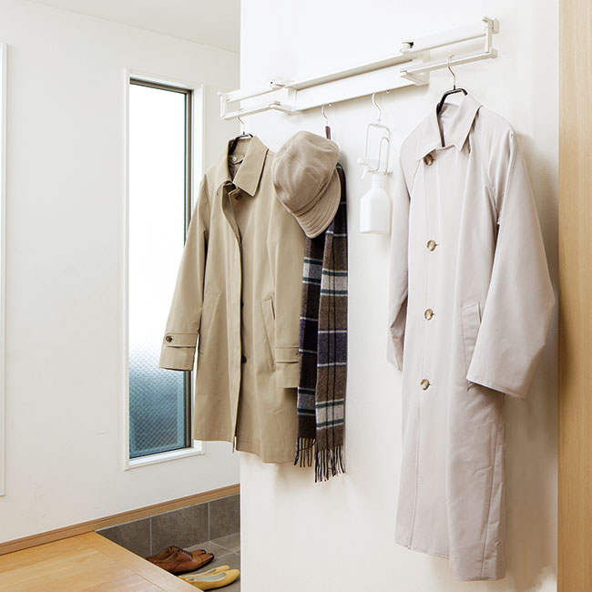 各自の部屋に設置して、翌日着る洋服の準備や帰宅後に洋服の一時掛けに使ったり、玄関に設置して上着掛けとし、家の中への花粉や菌・ウィルスの侵入防止に使ったりできます。