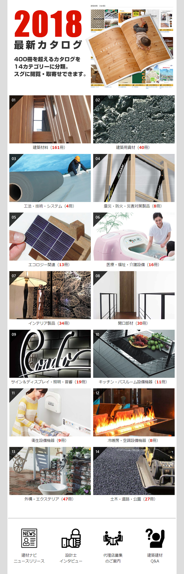 建材ナビは800社を超えるメーカーの製品を200以上のカテゴリーに分類した建築材料専門の検索サイトです。