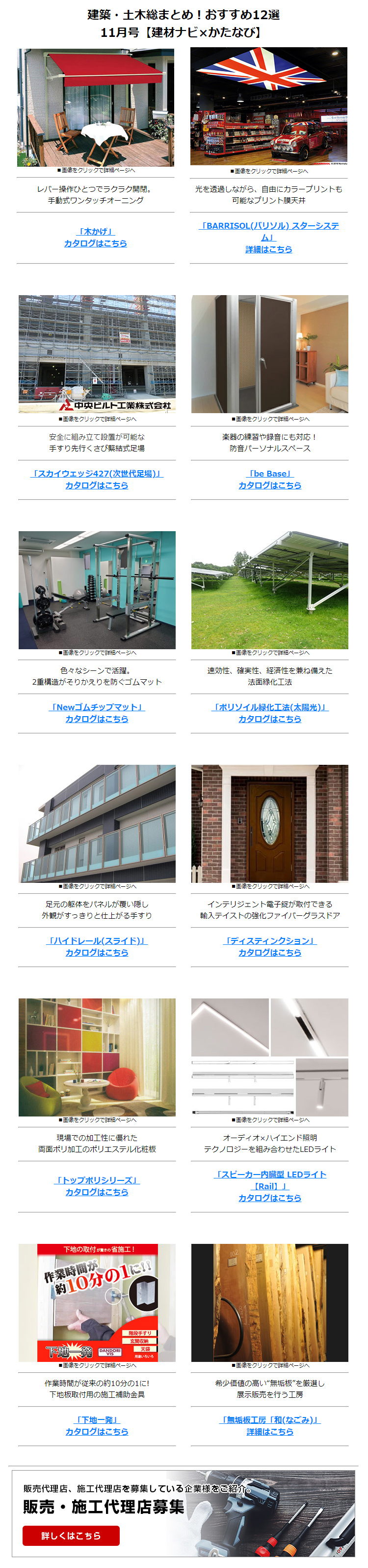 建築・土木総まとめ!おすすめ12選 11月号【建材ナビ×かたなび】
