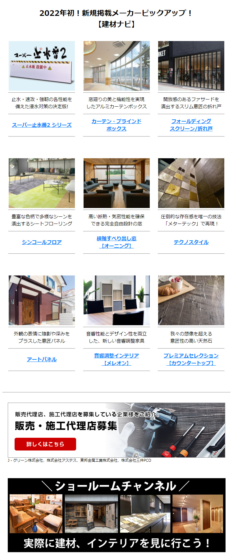 2022年初!新規掲載メーカーピックアップ!【建材ナビ】