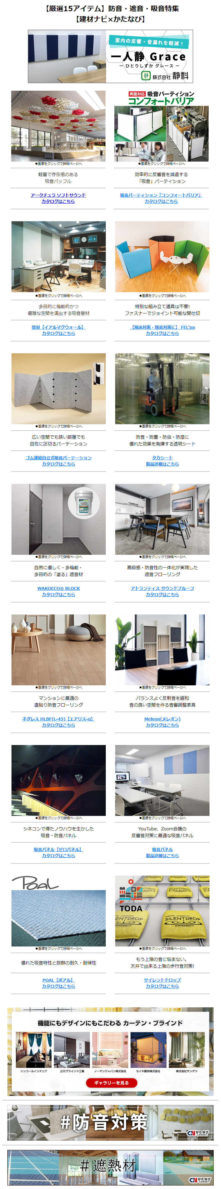 【厳選15アイテム】防音・遮音・吸音特集 【建材ナビ×かたなび】