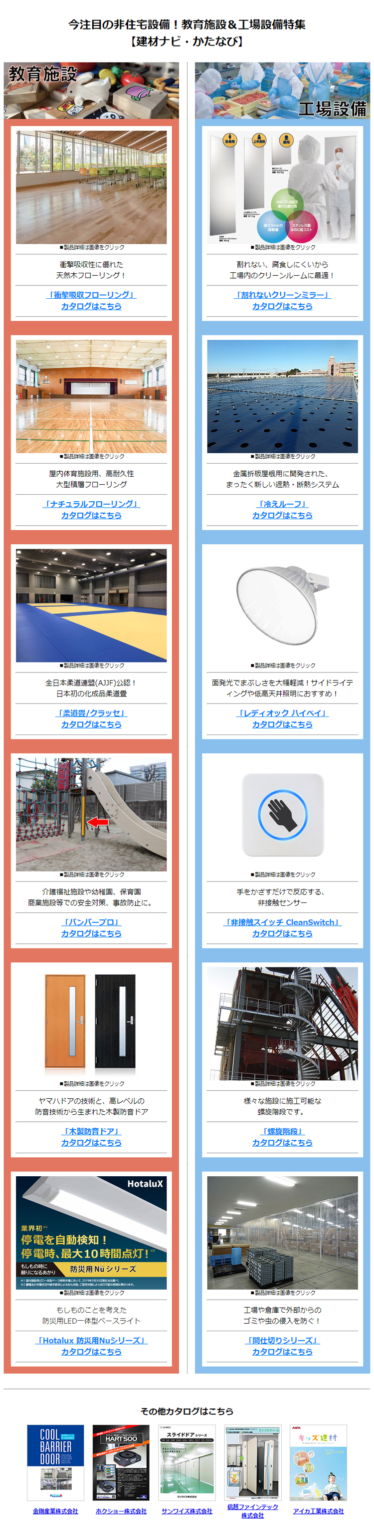 今注目の非住宅設備!教育施設&工場設備特集【建材ナビ・かたなび】