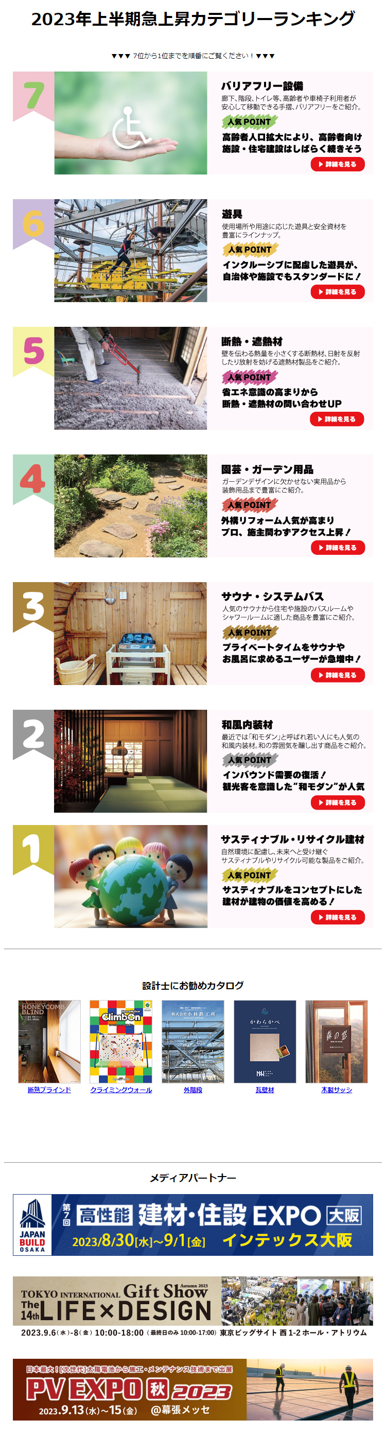 【特集!】2018年度前半!建材ナビカテゴリーランキング