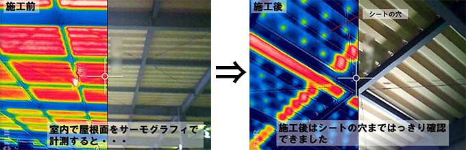 『冷えルーフ』による温度低減の効果は、サーモグラフィーで見ると一目瞭然。