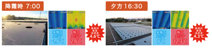 この断熱層により、折板屋根上下の温度差を小さくできるので、屋根裏面の結露の抑制にも貢献します。結露水の落下でお困りの方にオススメです。
