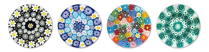 ミルフィオリの断面パーツを環状に並べ、高温で焼成し一体化させた後、丹念に磨き上げたガラスパーツです。