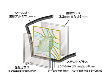 ・ピュアグラスを破壊して内部に侵入するためには、「強化ガラス→ステンドグラス→強化ガラス」という三重の労力と時間を要するため、防犯性の高いガラスといえます。