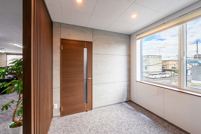 内装の接着張りに適した作業性に優れた材料で、寸法安定性の高さによりビス頭のない施工を可能にし、意匠性の向上にも寄与。