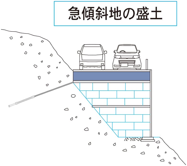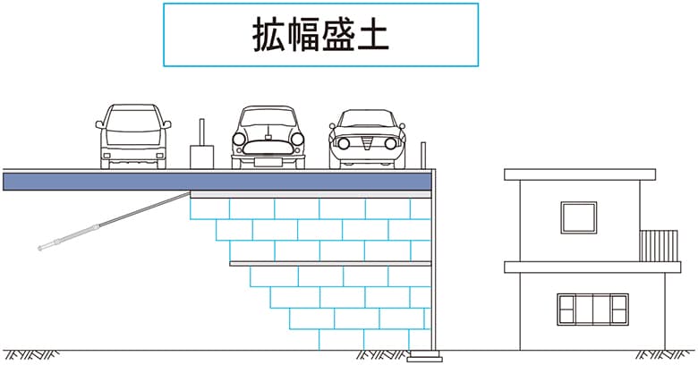 特にその自立性を活かし、狭隘な山岳道路の拡幅盛土では簡易な壁体構造で盛土が可能となり、多くの実績を有しています。