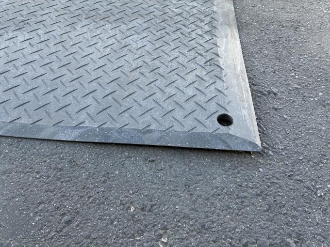 PVC製のため柔軟性に優れ、凹凸がある接地面にも良好に追従します。持ち運びしやすい取手付きで、鉄製敷板の代替として、建設現場や駐車場などでの設置・撤去の作業負担を軽減します。寸法変更や取手の数・取付け位置の変更、段差解消のための端部カット処理などの加工が可能です。