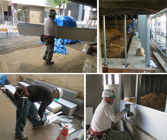 しかし、今回の新工法『TRパネル工法』は、壁面材が従来品の約10分の1と超軽量な両面金属ウレタンパネル「トリトンレボーW」を採用し、支柱も「リップ溝型鋼」を用いることで、重機を使用せずに壁体を構築することができます。