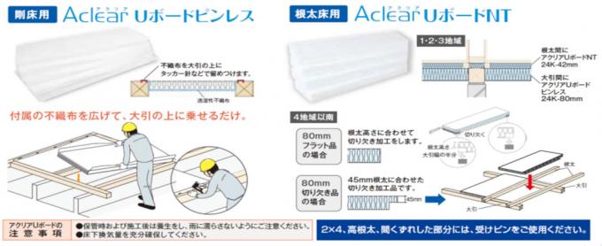 施工性に優れ、透湿性を備えた2タイプの床用アクリアボード