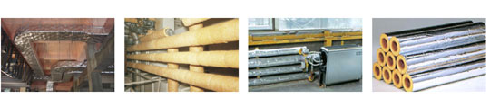 ・オフィスビルやマンション、工場などの冷水・温水管、給湯・蒸気管の配管の保温・保冷にはグラスウールが使われています。プラント用大口径配管や空調システムの鉄板ダクトの断熱・吸音にもグラスウールが使われています。