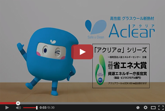 2007年に販売開始した高性能グラスウール断熱材「アクリア」は、優れた断熱性能、シックハウス症候群の原因のひとつと言われる有害物質ホルムアルデヒドを含まない材料を使用した健康への配慮に加え、細繊維化により施工時のチクチク感を低減しソフトな手触りを実現しています。さらに進化した「アクリア」として、世界初(※2)の超細繊維により更なる高断熱を実現する「アクリアα(アルファ)」を2014年より発売、「アクリアα」シリーズは平成26年度省エネ大賞「資源エネルギー庁長官賞[製品(業務)分野]」を受賞(※3)しました。
