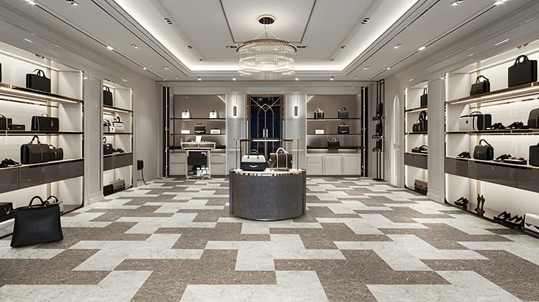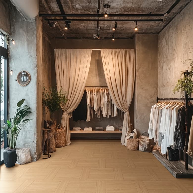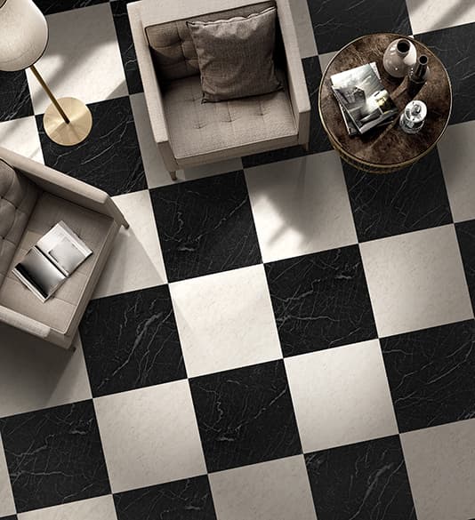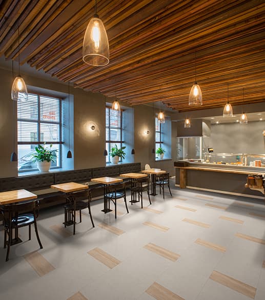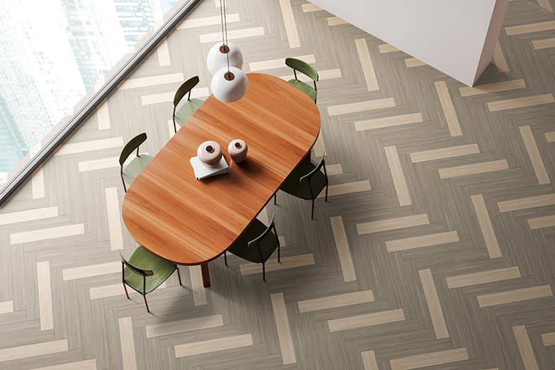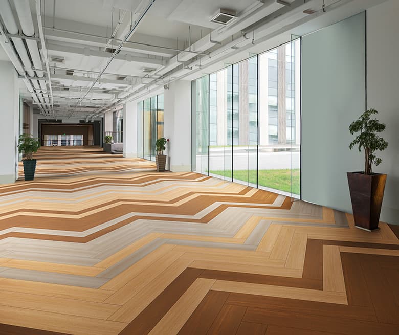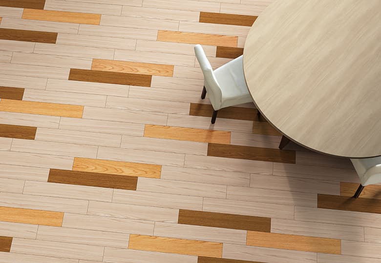 メラミン化粧板の強さと、施工性を兼ね備えたフロアタイル