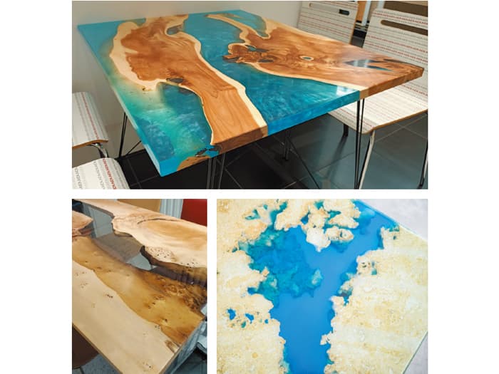 「レジンテーブル」や「リバーテーブル」と呼ばれる、エポキシ樹脂と天然木を組み合わせて作られたテーブルが、海外で話題となっています。異素材の組み合わせによるユニークさや高級感、デザインの自由度の高さなどから、日本においても人気が高まってきています。使い道が無く廃棄されていた端材を活用すれば、資源の有効活用にもつながります。しかしながら、レジンテーブルが普及し始めた段階にある日本では、専用樹脂を扱う国内メーカーがまだ少なく、ECサイト等によって海外から入手するケースが多い状況でした。