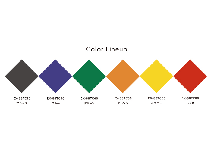 ■6色の着色トナーを取り揃えています。トナーの添加量や混ぜ方によって、お好みの色合いに調整できます。