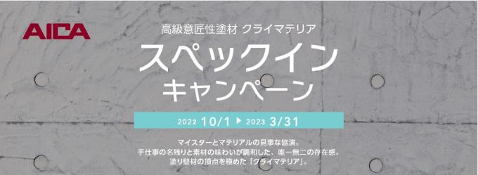 アイカ工業株式会社は、高級意匠性塗材「クライマテリア」のスペックインキャンペーンを実施しています。