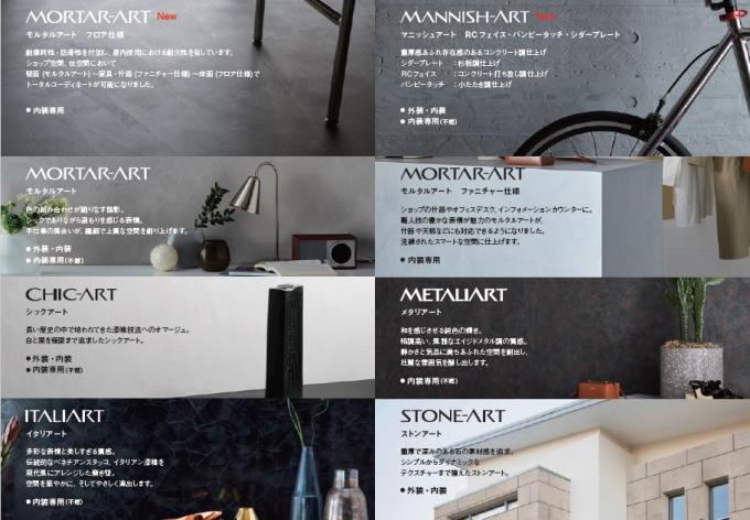 2018年に発売した「クライマテリア」は、素材感と高級感を追求した高級塗材ブランドです。2021年には、屋内フロアへの施工が可能な「モルタルアート フロア仕様」と、重厚感あふれるコンクリート調仕上げが特長の「マニッシュアート」が、ラインナップに加わりました。