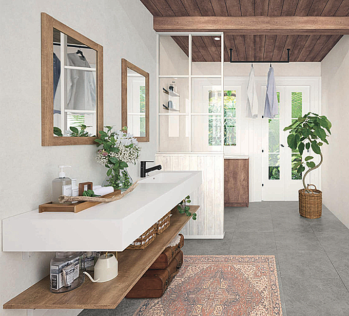 洗面カウンター×棚板×収納小物で、"あなた"らしい洗面空間を演出