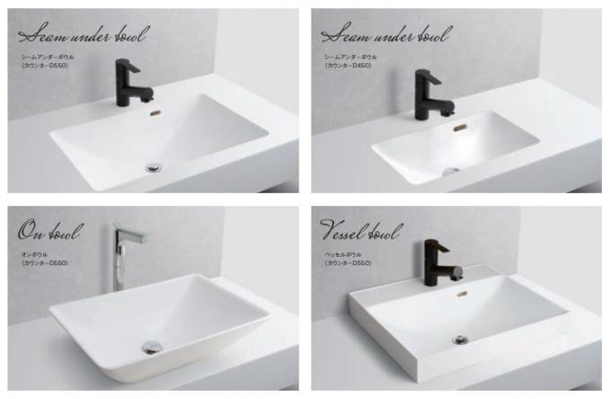 海外で定番となりつつあるベッセルボウルをはじめ、複数のボウルデザインをラインナップしています。(奥行やカウンター形状によって対応可能なボウルは異なります。)