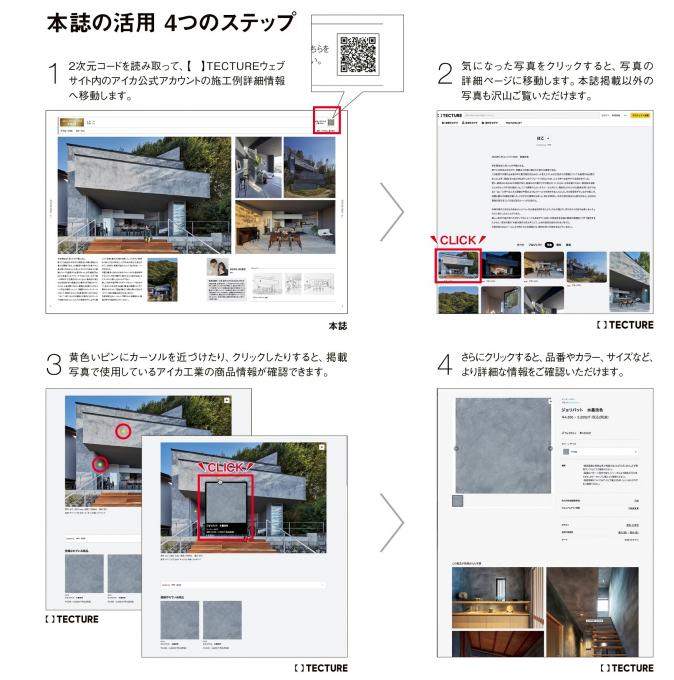 また、そのすべてに二次元コードを掲載し、スマートフォンなどで二次元コードを読み込むことで、より多くの写真を見ることができ、使用されている製品情報が簡単に確認できます。