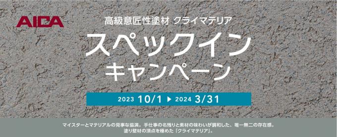 アイカ工業株式会社は、高級意匠性塗材「クライマテリア」のスペックインキャンペーンを実施します。