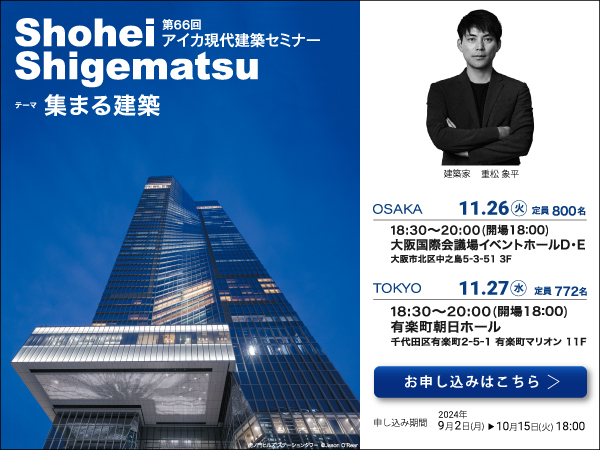 重松象平氏を招いて「第66回アイカ現代建築セミナー」を開催