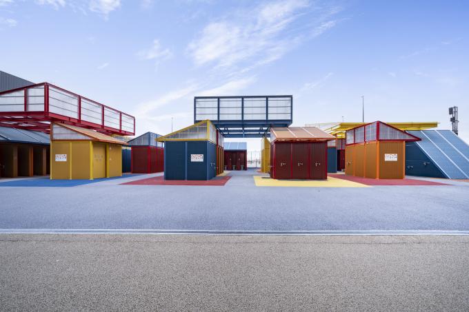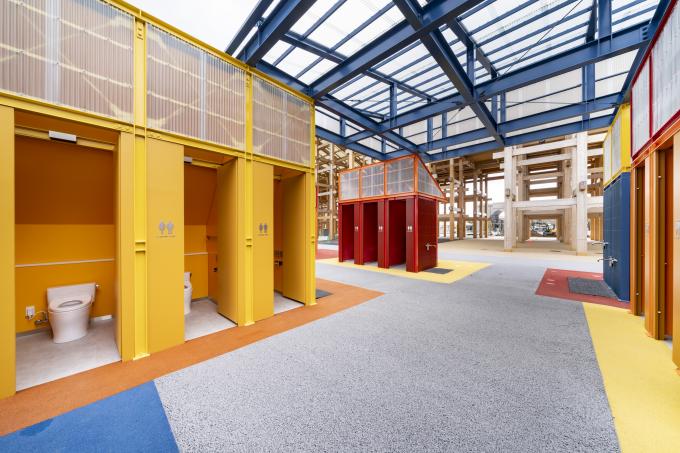 大阪・関西万博のトイレ5を設計した建築家の米澤隆氏は、「多くの国・地域から人が集まり、メッセージを発する場でもある万博を、新たな建築にチャレンジする場と捉えて設計しました。半年間の会期中のみで使用するには環境負荷が大きく、移設・転用できるようにすることは必須と考えました。そこで、積み木のように、積んだり組み替えたり、さらには持ち運んだりできるブロック単位での構成としました。終了後にはブロック単位で移設し、必要な数・形に組み替えてさまざまな場所で使える建築物となっています。会期中は非常に多くの人が使用し、さらには万博終了後も移設して長く使用していくため、品質・デザイン面で良い製品と日頃より感じていたアイカ製品を採用しました。万博ということで、カラフルなデザインで華やかさをもたせていますが、カラーバリエーションが豊富なため、特注色は使用せずとも、ひとつひとつのブロックに個性をもたせることができました。また、床に使用している「メラミンタイル」は基本的には屋内向けの素材とのことですが、ひとつの区切りである万博の会期が半年間である点を活かし、実験的に半屋外で使用しています。石やタイルの床材に比べて安価であり、塩ビ系素材に比べて汚れや紫外線に強いため、バランスが良い床材だと感じています。どの製品も耐久性に優れているとのことで、長期間での利用はもちろんのこと、移設に伴う解体・運搬にも耐えてくれることを期待しています」と語っています。