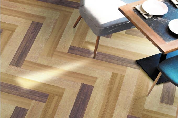 当社の主力製品であり耐久性やメンテナンス性に優れる"メラミン化粧板"と、商業施設の床材として多く使用されている"塩化ビニル樹脂(塩ビ)系床材"の長所を組み合わせた床材です。ヒールマークやゴム製キャスター汚れ、タバコの焦げなどに強く、汚れても水拭きで簡単にお手入れが可能。ノンワックスで美観が保たれるため、ワックスがけの労力・コストがかかりません。