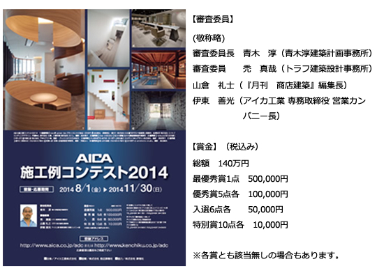 「アイカ施工例コンテスト2014」開催のお知らせです。 多数のご応募をお待ちしております。