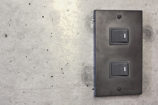 コンクリートの打ちっぱなし等に特に相性がよいスイッチプレートです。