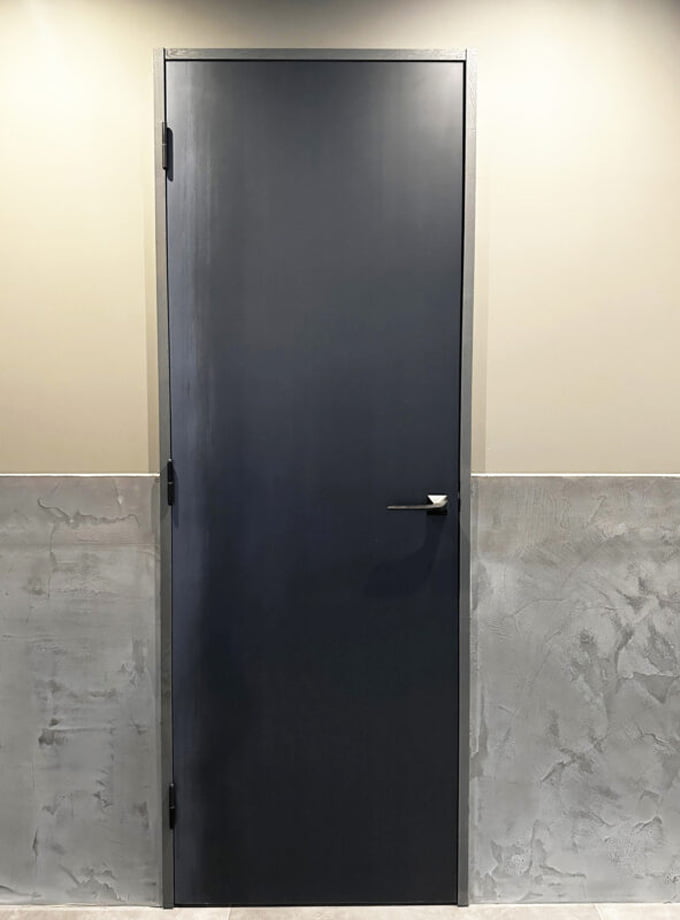 ▼黒皮鉄シートを木製建具(750×2,100mm)に貼り込んだ状態です。