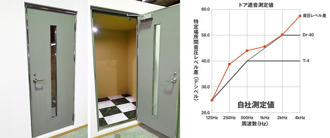 防音技術にも取り組み、赤阪鐵工所オリジナルの防音浮き床を用いて「業務用防音室」、また「防音ドア」を開発し販売しています。