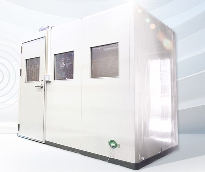 建築基準法・消防法などの規制をクリアすることができ、場所を選ばず簡単・短工期で設置できます。人が不快に感じる中高音域を防音できるだけでなく、振動音も大幅に削減可能です。