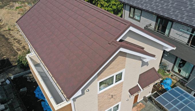木製屋根を完全に再現したストーンチップ付金属製屋根材
