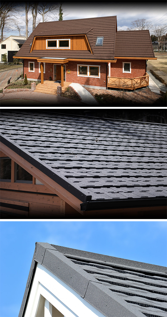 「ヴィクセン」はベルギーのイコタイル社で一貫生産された、北欧で最も愛されている天然石付ガルバリウム鋼板屋根材です。機能的でいて温かみのある北欧デザインの「ヴィクセン」は日本の様々な住宅をより優雅に演出します。