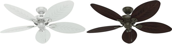 人影が少なくなった夕暮れのビーチ、そして風に揺れるパームリーフ。日常空間をそんな常夏の風景へと変えていく、トロピカルテイストのシーリングファンです。