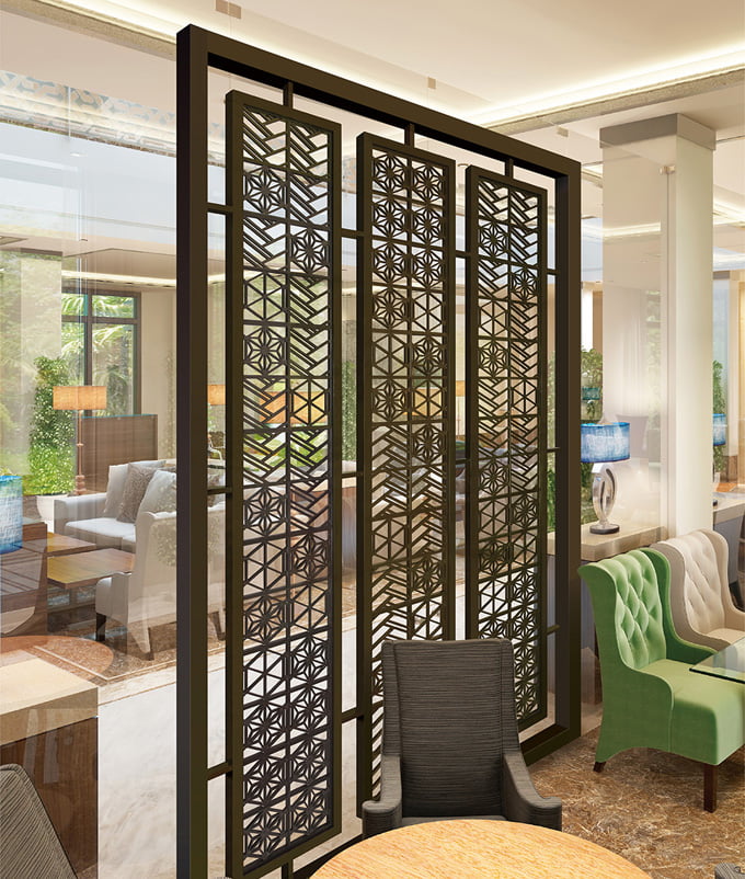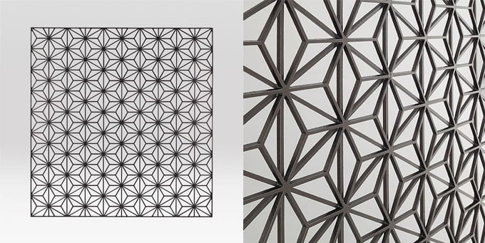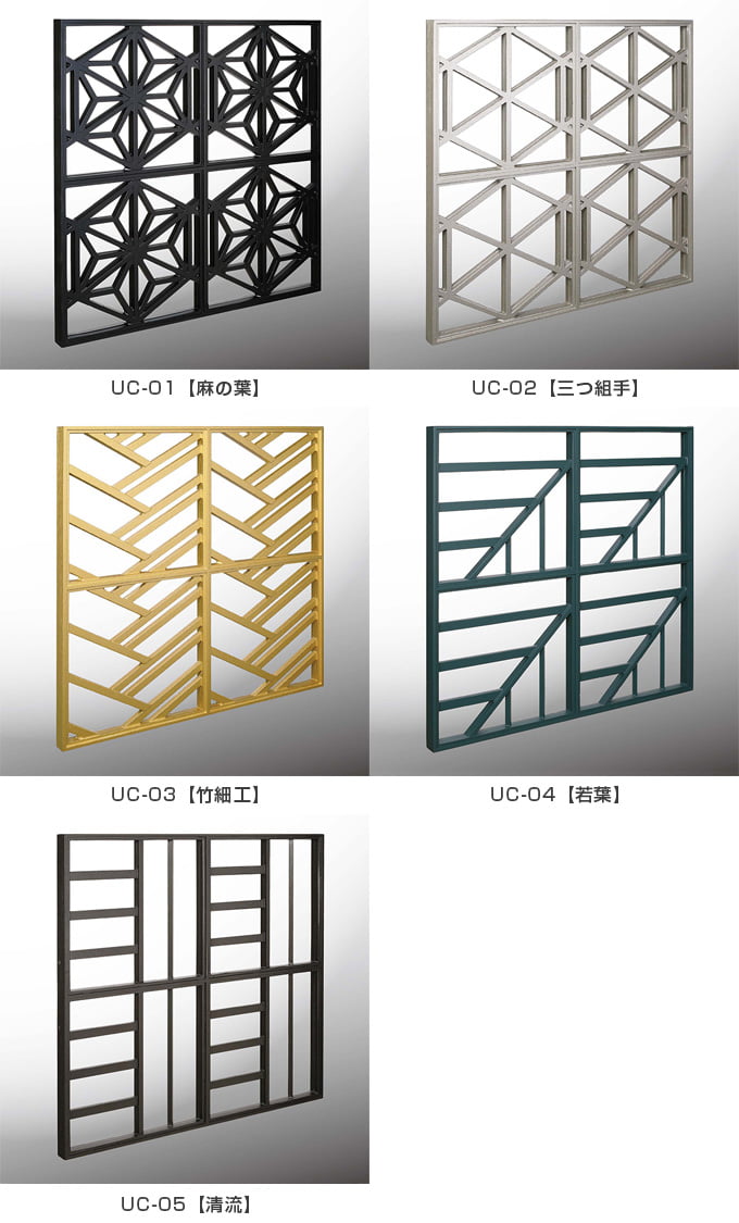 日本伝統文様「麻の葉」や「格子の組子」、「さざなみ」をアルミ鋳物でパネル化。