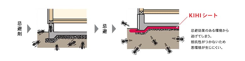 殺虫・駆除より土壌や室内の空気を汚さない「忌避性」を基本とした防蟻工法