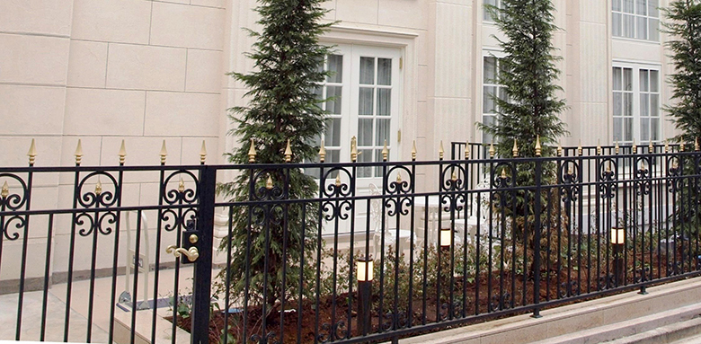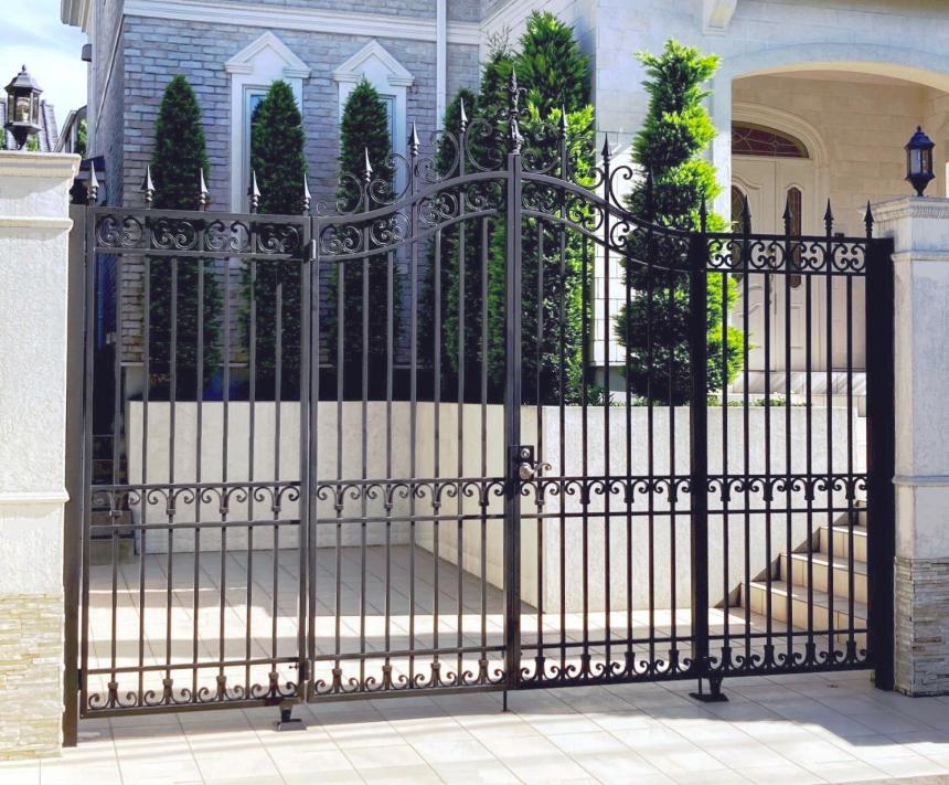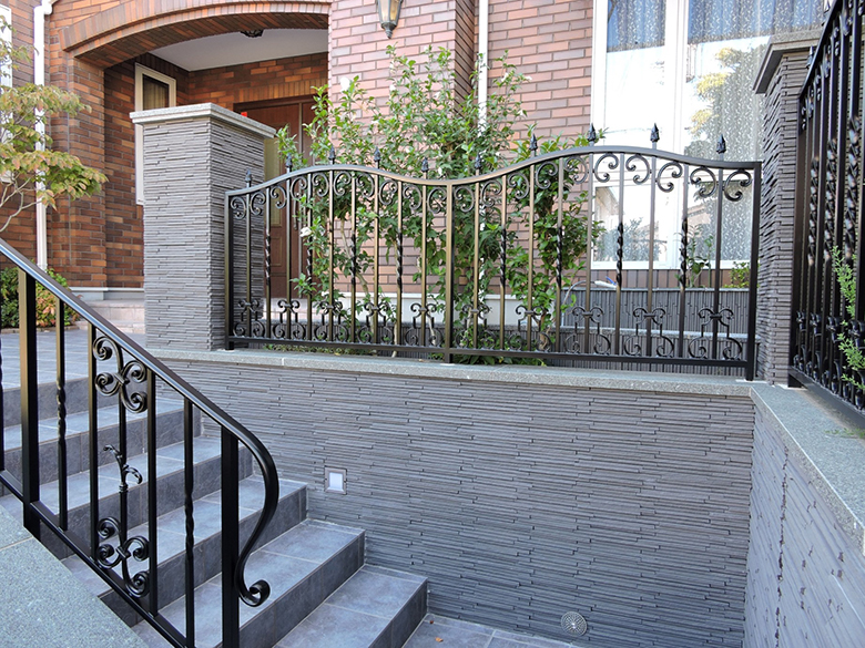 門扉は模様を多めに入れて優雅に仕上げ、フェンスはシンプルに仕上げても、共通性を持たせる事が出来ます。