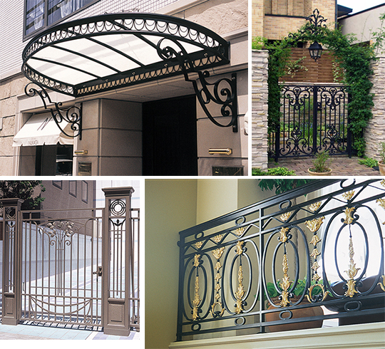 鋳物や鉄のたたき仕上げで美しい模様を形造り、空間を演出致します。