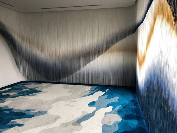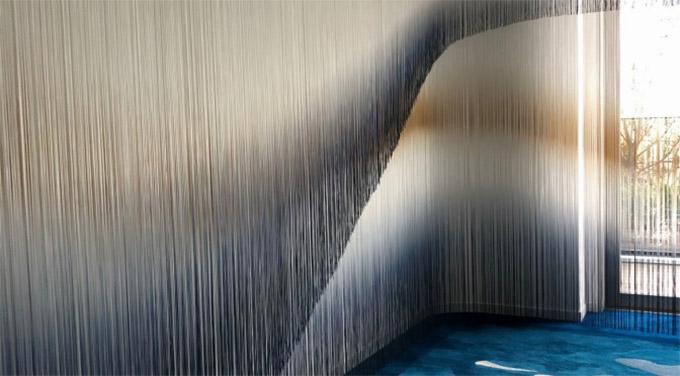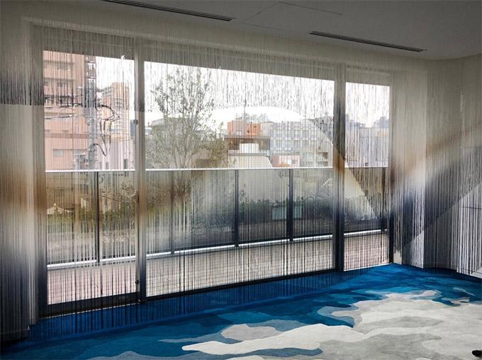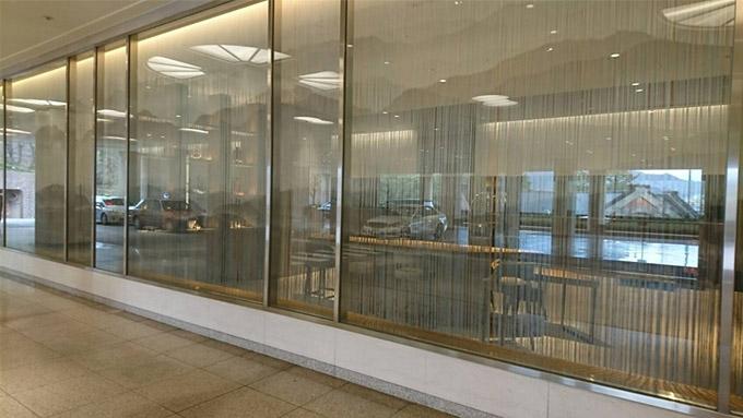 こちらは京都の山々を山水画のようにうっすらと見せ、京都らしい、和の世界をストリングスカーテンで表現しています。こうしたボンヤリとした表情は、ストリングスカーテンにはピッタリなんです。