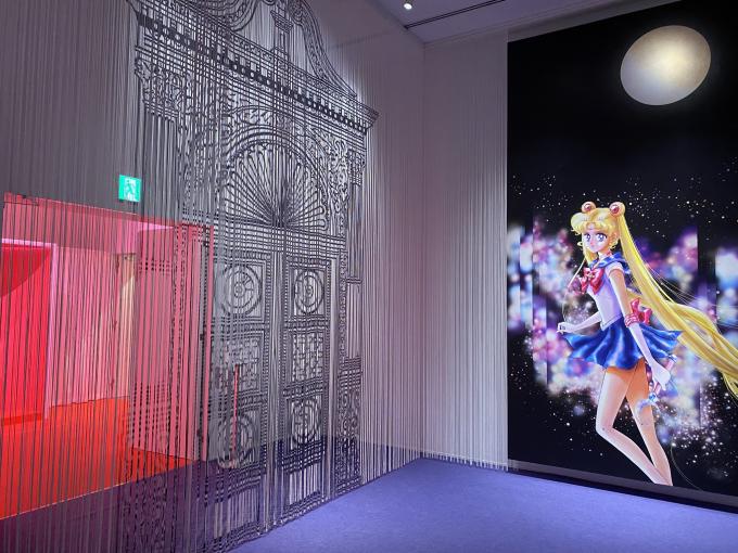 人気アニメ「セーラームーン」の作品を一堂に集めて行われた展覧会「セーラームーンミュージアム」の入り口と出口にラインビューデジタルプリントが採用されました。時空の扉と名付けられたゲートをくぐり、来場者はセーラームーンの世界へと入っていきます。通り抜けられるラインビューの特性と、柄表現が出来るラインビューのデジタルプリントの両方を組み合わせて上手く生かした、とても面白い使い方です。