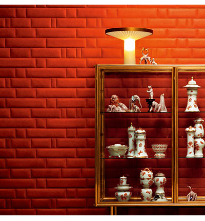 イタリアならではの感性が光るレザーウォールの美しさ。