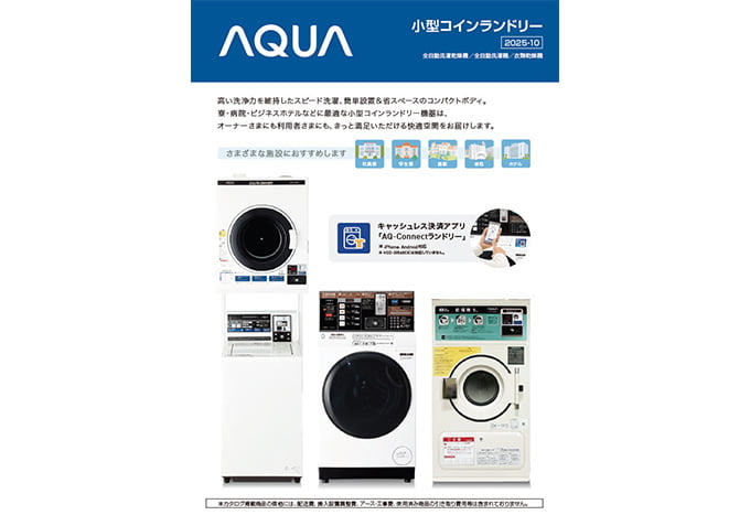 洗濯を、もっとスマートに進化するランドリーソリューションAQUAのコインランドリー機器。