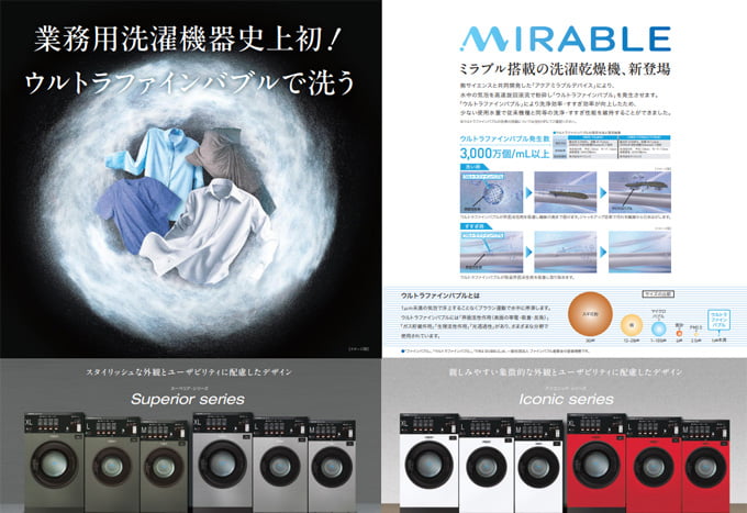 ウルトラファインバブルで洗うミラブル洗濯乾燥機や、ホテル・病院などのランドリールームに最適な全自動コンパクトモデルなど、注目の製品を最新カタログよりご覧になってみてください!